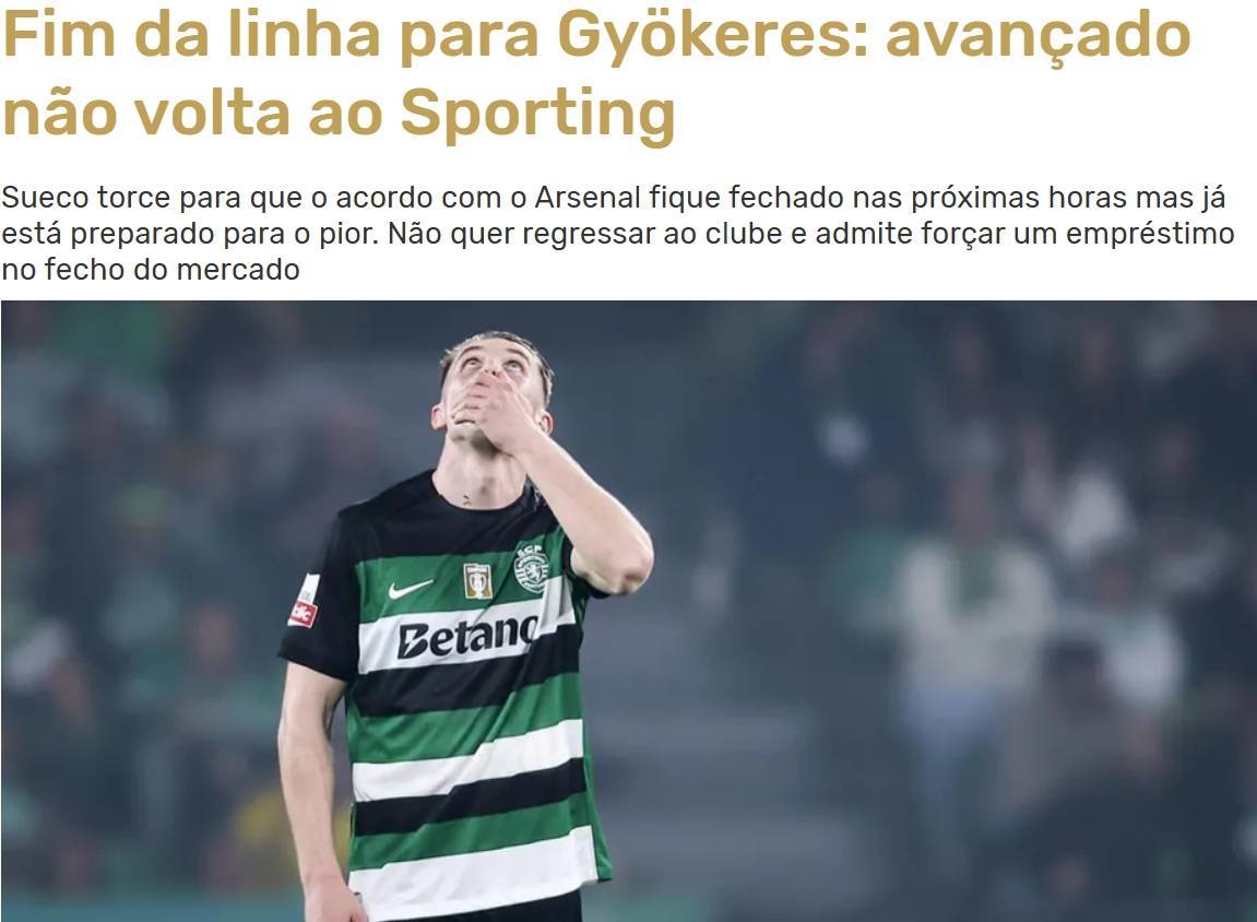 约克雷斯转会阿森纳的谈判已经进入最后阶段,约克雷斯希望交易能够在未来几小时内完成。但他也已经做了最坏打算,表示自己不会再回到葡体。